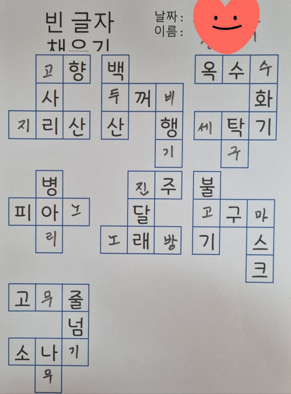 단어 빈칸을 다 채워 완성을 하셨을때 성취감을 느끼며