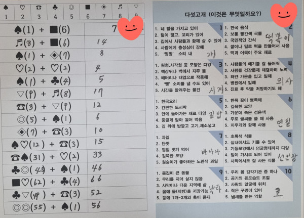 계산하기와 다섯고개 퀴즈 맞추기를 해 보았습니다.